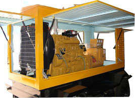 会山镇柴油发电机组/移动柴油发电机组设计独具创新,机动性高、重心低、制动安全、制造精良、外形美观。 会山镇拖车车架采用槽梁焊接成框架结构,节点选择合理、强度高、刚性好;同时装有钢板弹簧悬架结构;拖车采用高度可调节插销式牵引架,适用于各种高度牵引车;采用圆形钢管焊接直通式车轴,结构紧凑,安全可靠;车架四角设有机械式支撑装置,配备惯性行车制动、驻车制动和脱离应急制动,确保机组在各种状况下的安全;车架前端设有支撑轮,具备承受机组垂直载荷的功能的同时还具备导向功能;整车配备转向和刹车指示灯,同时装有尾灯标准插头